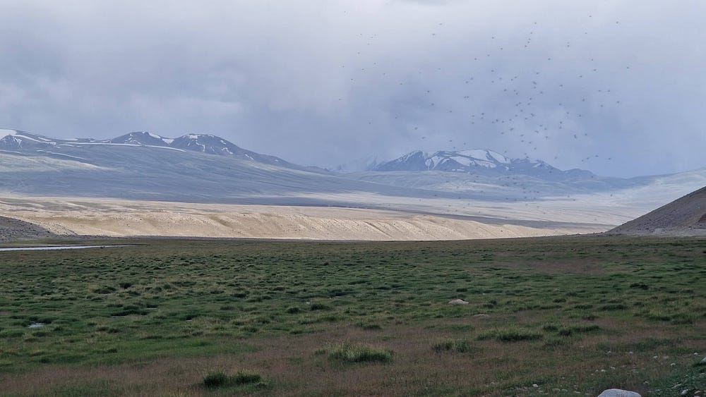 Долина заповедника Зоркуль очень красива. Особенно та часть, которую проехали вчера. Сегодня тоже симпатично, но более сурово: едем по холмам как по степи.