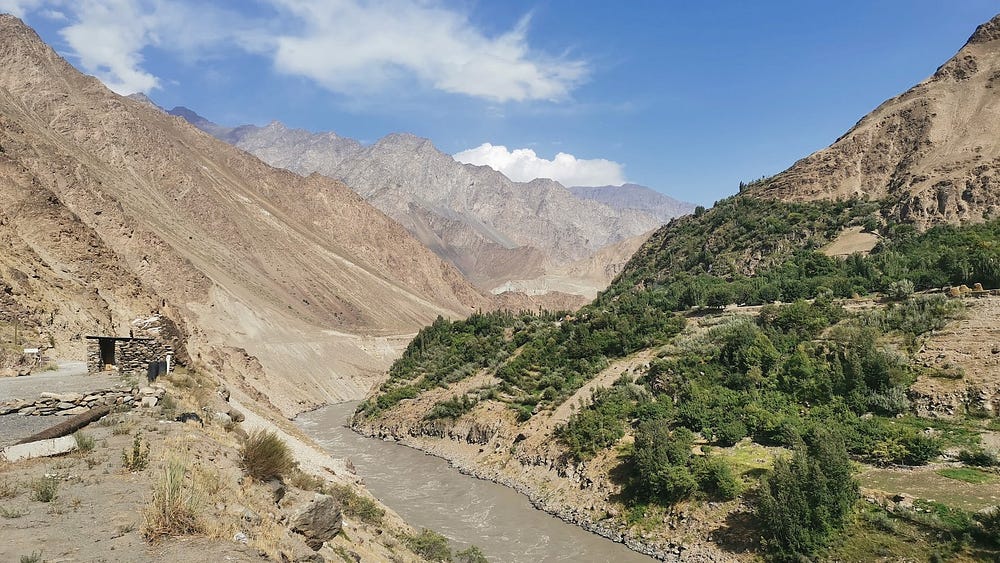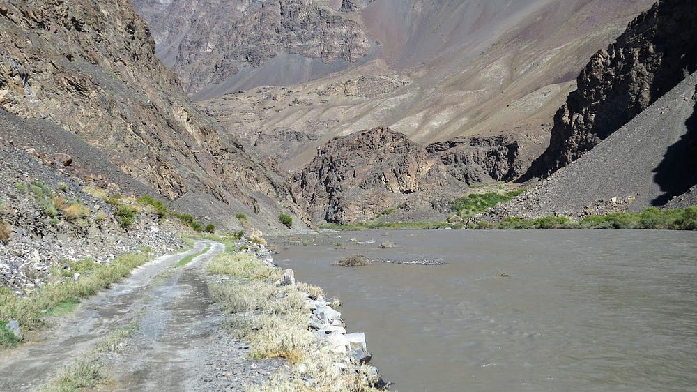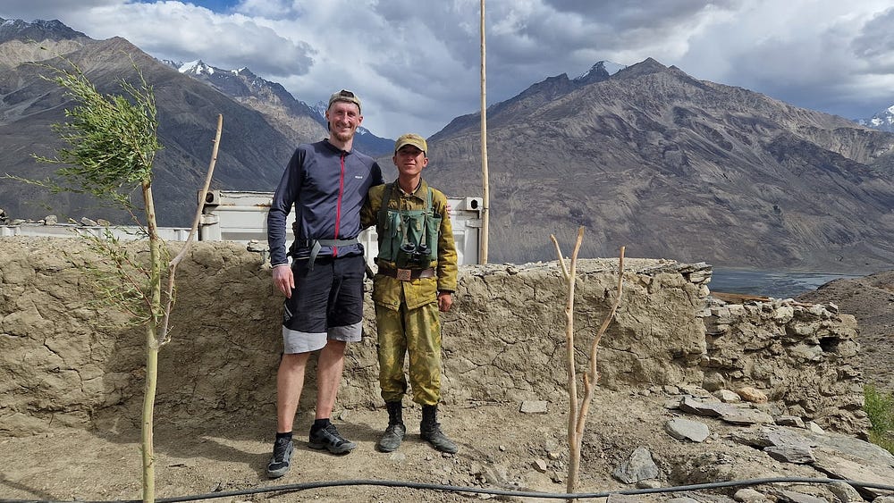 Ещё постоянно встречаются пограничники: базы и патрули. Ведь Пяндж (а выше — и Памир) являются границей между Таджикистаном и Афганистаном. Говорят, что в горах повыше эти реки замерзают зимой и жители могут ходить друг к другу “в гости”. Что, конечно, незаконно и с чем пограничники борются. Но в любом случае, несмотря на границы, этнически по обе стороны реки живёт один народ — памирцы.