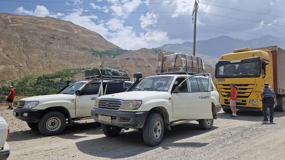 Рано утром мы выехали в сторону Душанбе. И снова несколько часов ждём, пока откроют дорогу. Честно говоря, мне непонятно, зачем мы так рано выехали. Занять очередь? Перед нами пять машин, за нами тоже прибывают.