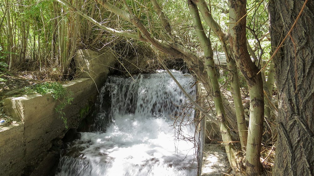 Очень хочется пить — и большую часть набранной по пути минеральной воды я выдула слишком быстро. Ещё до того, как осознала, что нам встречаются лишь пересохшие ручьи. И ни единого тенька. “Вода, вода…” — крутится в голове, а я тем временем полоскаю рот остатками минералки.