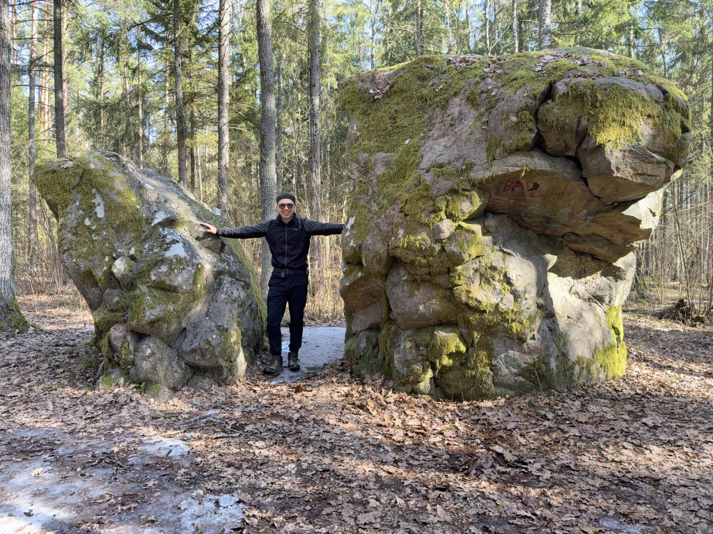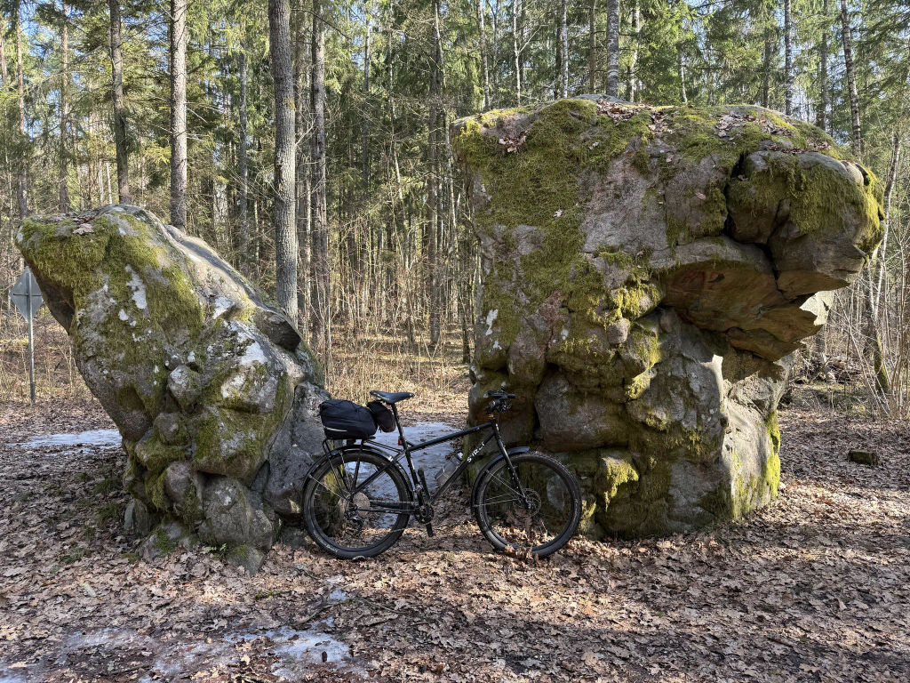 Не доезжая до Слонима, свернул в лес. Он оказался сухим и солнечным. В лесу стоит валун «Расколотый камень» — огромный по белорусским меркам кусок скалы.